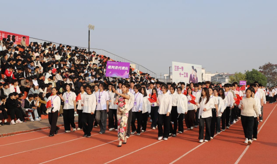 开幕式伊始,由经济管理学院带来的啦啦操《幸运一击》作为开场舞,以其动感的节奏和活力四射的表演,瞬间点燃了现场的气氛。随后,国旗、校旗、会旗、裁判员代表队、教职工代表队、社团管理中心、各学院运动员代表队依次入场,他们步伐整齐、精神抖擞,展现了全校师生的风采。