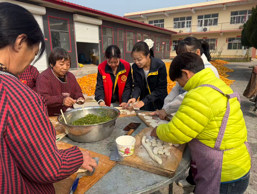 活动现场,志愿者们带来了精心准备的文艺演出,歌声悠扬,舞姿翩跹,赢得了老人们的阵阵掌声,现场欢声笑语不断。演出结束后,志愿者们又围坐一起,与老人们热热闹闹地包起了饺子。大家一边手上忙活,一边亲切地唠着家常,关切地询问老人们的身体和生活状况。