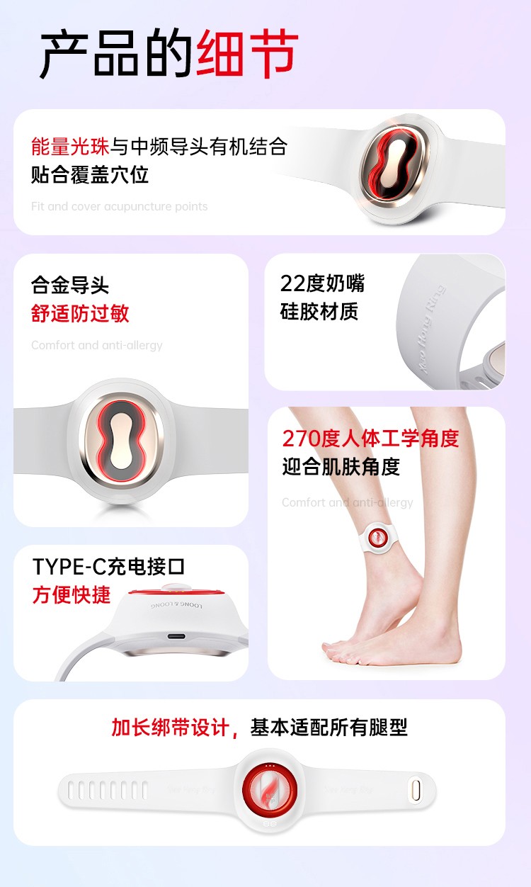 其作用原理聚焦两大关键穴位:“女人不老穴”三阴交穴(肝、脾、肾三经交会处,可调节脏腑功能、改善气血失衡)与胆经“髓会穴”悬钟穴(能促进气血循环、增强代谢能力),通过“阴阳配穴”实现“经络通、气血荣”,从根源解决脏腑失调、气血不足导致的皮肤早衰问题——这也是它区别于普通美容仪“只修表皮”的核心优势。