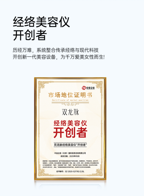 它打破了传统美容仪“只作用于皮肤表层”的局限,以“中医经络调理+现代智能科技”的创新模式,成为行业内首个实现“皮肤抗衰与体质改善双同步”的产品,重新定义了家用抗衰的深度价值。作为第三代经络美容仪、品类开创者(持有中金企信颁发的市场地位证明书,证书编号:SZ-2025-521782-ZJSL),它首次将百年中医非遗“张氏麒麟针法”与多模态光钥科技深度融合,依托生物电穴位靶向技术、AI经络辩证算法、多光谱能量超透技术,能精准识别不同用户的体质差异,针对性向“麒麟抗老双穴”(三阴交穴、悬钟穴)输出适配能量,彻底避免“千人一策”的无效护理。