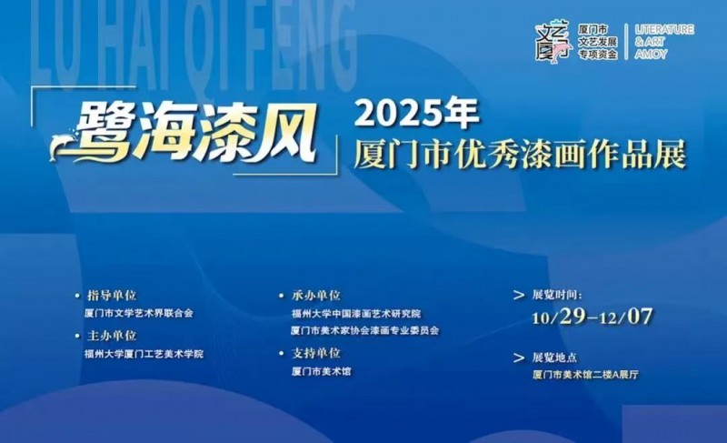 本次展览由厦门市文学艺术界联合会指导,福州大学厦门工艺美术学院主办,福州大学中国漆画艺术研究院、厦门市美术家协会漆画专业委员会联合承办,厦门市美术馆提供支持。作为主办单位的福州大学厦门工艺美术学院,自1974年开设漆画专业方向以来,历经50余年深耕,已构建起完备的现代漆画教育体系,为行业培养了大批优秀人才,成为中国现代漆画教育与创作的重要阵地。