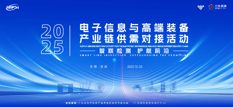 2025年10月30日下午,由江苏省电子信息产品质量监督检验研究院(江苏省信息安全测评中心)主办的“智联检测·护航前沿”2025电子信息与高端装备产业链供需对接活动,在无锡市滨湖区成功举行。本次活动旨在搭建产业链上下游企业精准对接的高端平台,推动检测技术赋能产业创新,促进区域经济高质量发展。来自中国质量认证中心南京分中心、华为、京东方、联想、浪潮等产业链重点企业、科研机构及媒体代表近200人参与本次对接活动。