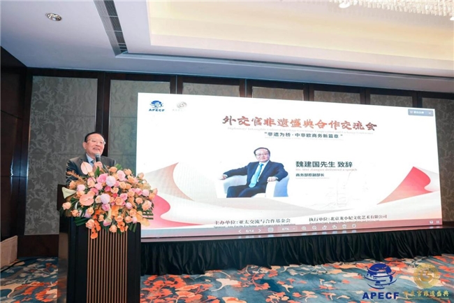 亚太交流与合作基金会执行副主席、外交官非遗盛典组委会主席肖武男率先致开幕辞,从文化互鉴与经济共赢双重维度,阐述了本次活动的核心意义,及中非欧非遗交流与商务合作的长远愿景。