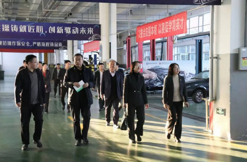 张旭一行先后实地参观了学校汽车工程实训基地、无人机教学实训车间、智能制造实训中心和智慧物流实训中心,听取了相关专业负责人关于专业课程设置、校企双主体育人、学生实习就业、专业人才培养等情况介绍,详细了解了学校在推进校企合作、深化产教融合、提升学生实践能力方面的具体做法与经验成果。