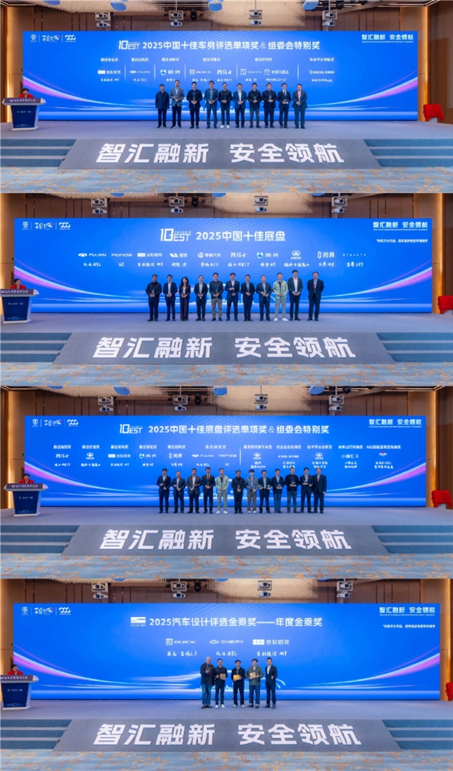大会期间,举行了“2025中国十佳车身评选”“2025中国十佳底盘评选”“2025汽车设计评选金乘奖”等重要奖项颁发仪式与“汽车安全新质技术创新基地”揭牌仪式,激励企业持续深耕技术创新,推动汽车安全技术水平迭代升级。此外,数十位来自整车及零部件企业、行业协会及专业媒体的代表围绕前沿安全技术、创新应用理念等内容作主题演讲,为企业应对未来汽车安全挑战提供了多元解决方案。
