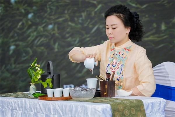 茶艺师同步展演传统冲泡技艺,让现场嘉宾直观感受福州茉莉花茶的冲泡流程与品质特点。此外,福州茶厂、春伦集团、闽榕茶业等代表性企业依次亮相,围绕品牌建设、工艺创新、产销模式、市场拓展等方面进行交流分享,全面呈现了福州茉莉花茶产业的多元化发展态势与深厚底蕴。
