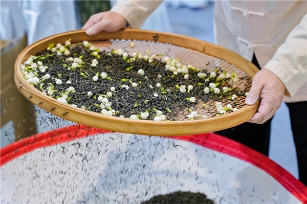 推介会现场设置了福州茉莉花茶非遗窨制技艺展示环节,福州茉莉花茶传统工艺非遗传承人严锦华现场演绎“九窨一提”核心技艺,从筛花、窨制到通花、起花,每一步工序都展现了传统制茶工艺的精湛与严谨。
