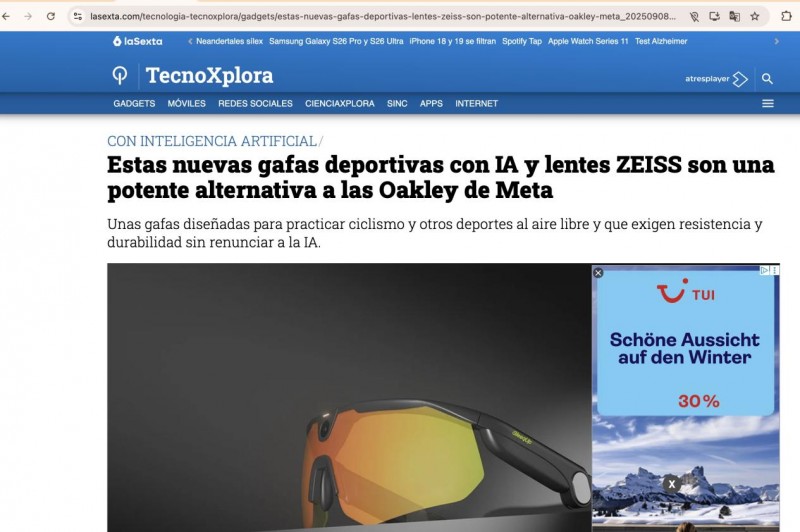 自海外发售以来,BleeqUp超影擎凭借产品力与技术整合能力,获得多家国际权威媒体的高度评价。在IFA 2025中,BleeqUp 被列为“IFA 2025最佳可穿戴设备之一”。德国Golem评价其“填补了经典运动相机与传统运动眼镜尚未覆盖的空白”,而西班牙laSexta则直言“这款配备AI的运动眼镜是Oakley Meta Vanguard的有力替代品”。英国/美国Wareable同样将其列为年度最值得关注的智能穿戴设备之一。