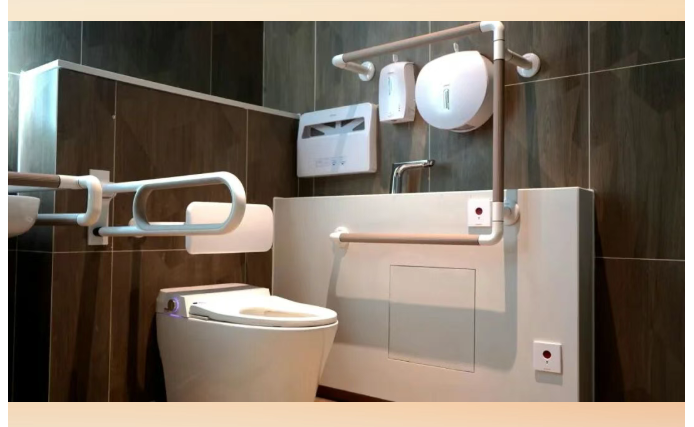 电动推拉门、安全抓杆、感应式垃圾桶智能坐便器、紧急呼叫按钮等设施一应俱全,保障了特殊人群的安全使用