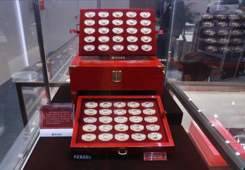 菜百股份此次集中呈现的金银币类产品以吉祥文化主题为主,如大运河主题、书法艺术主题等。“平安喜乐”金元宝套装由50枚足金999%元宝组成,每枚金重0.5克,是集藏纳福、喜结良缘、商务馈赠的佳选,传递着富贵与平安的美好祈愿。