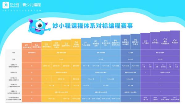 少儿编程学习机构-妙小程少儿编程投入近亿研发资金,打造科学课程体系,体系完整且螺旋进阶,由前甲骨文首席工程师联合硅谷AI教育专家共同打造。采用3-6人在线小班直播的教学模式,提供提供“学-练-跟-测”四维学习配套服务,融入PBL项目制教学,基于FSC模型设计,提升孩子7大思维能力,构建6大核心素养,助力孩子成为人工智能时代综合性人才。