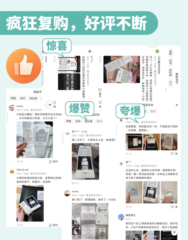 在这一背景下,嗅氪·AI调香实验室凭借其创新的AI调香技术,在市场上取得了显著的成绩。数据显示,嗅氪在小红书平台上的月GMV(总交易额)已经突破50w+,并且平台的好评率高达97.5%,复购率更是超过了50%,成为了年轻人的香气品牌新宠,用户画像集中在00后北上广等一线城市或者海外留学生,这一成绩不仅体现了消费者对嗅氪产品的高度认可,也证明了其个性化调香服务的市场潜力。