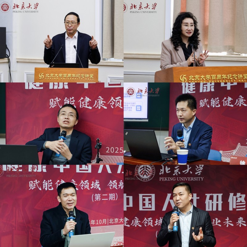 2025年10月31日至11月2日,第二期健康中国人才研修班在北京大学百周年大讲堂盛大开班。本期研修班紧密围绕国家战略需求,聚焦深入领会健康中国战略的丰富内涵与政策导向、精准把握大健康产业的发展趋势与前沿技术、全面提升健康产业创新管理与战略决策能力、积极构建健康领域全国高端人才资源网络。通过一系列系统化课程,全方位培养学员的战略思维与实战能力。