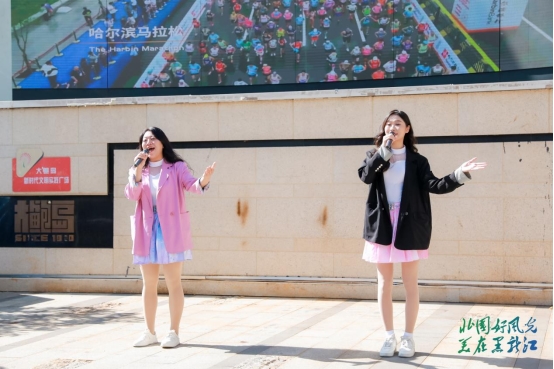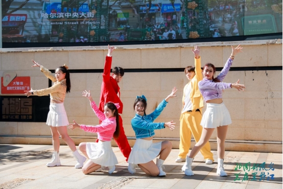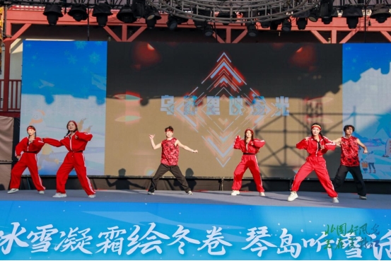 快闪活动在《一路向北方》的群舞中拉开序幕。舞者们以流畅的舞姿,演绎出奔赴北国雪原的期待与喜悦。随着节奏转换,来自哈尔滨的歌手献上的《快乐冰雪》,轻快旋律与朗朗上口的歌词,唱出了冰城人民的乐观豁达,不少观众随着节拍轻轻摇摆,现场顿时化作欢乐的海洋。