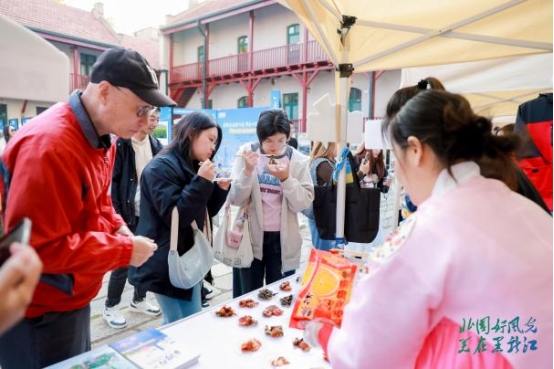 活动现场设置的黑龙江文旅市集汇聚了哈尔滨、鸡西、大兴安岭等地的特色文创、非遗手作与地道美食,以“可触可感”的方式,将北国风情带到黄海之滨。