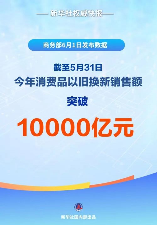 在以旧换新政策全面落地的第二年,该政策已成为激活中国内需、驱动产业升级和践行绿色发展的核心引擎。据国家商务部发布的数据显示,截至2025年5月底,在家电、汽车、家居、电子产品、厨卫设备五大品类,累计发放给消费者的补贴高达1.75亿份,“以旧换新”带动的销售额突破了1.1万亿元。这一数据,不仅彰显了国家促消费政策的强大带动力,还折射出中国消费市场的巨大潜力以及经济高质量发展的韧性。