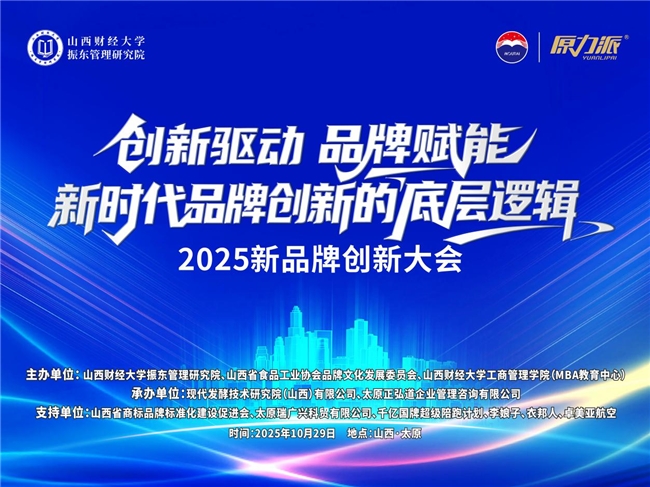 2025年10月29日下午,2025新品牌创新大会在山西省太原市海广海世界龙兴街店珍珠厅举行。本次大会由山西财经大学振东管理研究院、山西省食品工业协会品牌文化发展委员会、山西财经大学工商管理学院(MBA教育中心)联合主办,茅台山西、原力派、振东集团和荞歌碗团提供了部分赞助。大会以“创新驱动,品牌赋能:新时代品牌创新的底层逻辑”为主题,吸引了省内外200多名企业家及各界人士参与。会议包括主题演讲和圆桌讨论两个主要环节,主题演讲环节围绕“新时代品牌创新的底层逻辑”展开,由山西财经大学振东管理研究院院长、振东管理大讲堂创始人、原力派发酵功能饮品创始人宋瑞卿主持;圆桌讨论环节围绕“新营销与中小企业品牌建设”展开,由山西财经大学工商管理学院副院长、教授齐永智主持。会议中场,振东管理大讲堂与千亿国牌陪跑计划启动了战略合作仪式。本次大会的成功举办不仅让参会者深刻理解了品牌创新的底层逻辑,也为中小企业的品牌建设实践提供了切实可行的方法论。