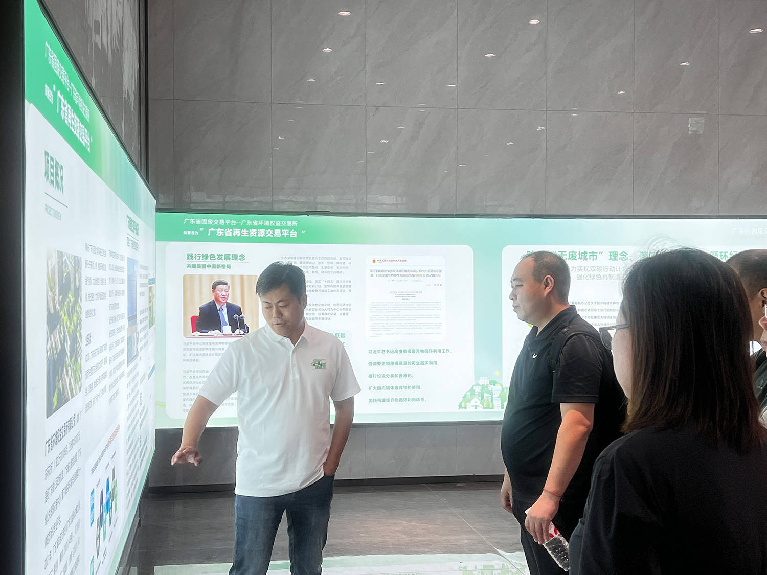 作为依托粤来粤浩孵化基地打造的全国性平台,“建废通 APP” 以 “资源整合 + 技术赋能” 构建建筑垃圾全链条绿色服务生态。调研现场,企业负责人黎时晗重点介绍:通过 “城市合伙人” 模式整合各地处置企业、运输团队及再生品资源,降低行业参与门槛;同时拓展再生品采购、绿色处置服务,减少填埋量、提升资源循环率,践行低碳理念。