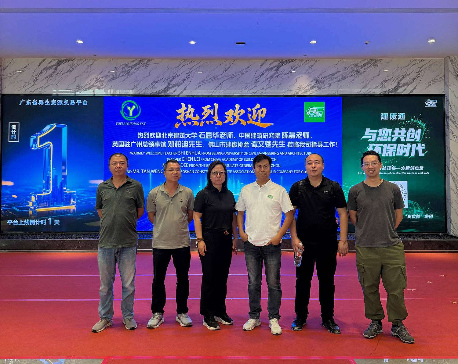 2025 年 10 月 30 日,佛山市粤来粤浩环保科技有限公司平台孵化基地迎来重磅调研团,北京建筑大学石恩华老师、中国建筑研究院陈磊老师、英国驻广州总领事馆邓柏迪先生及佛山市建筑废弃物处置协会谭文楚先生齐聚,围绕深圳市建废智联科技有限公司研发的 “建废通 APP” 落地应用展开深度研讨,为这款 “建筑垃圾处置行业美团 / 货拉拉” 的加盟推广、业务扩展注入动能,助力建筑垃圾资源化利用,推动中国环境保护与低碳绿色经济发展。