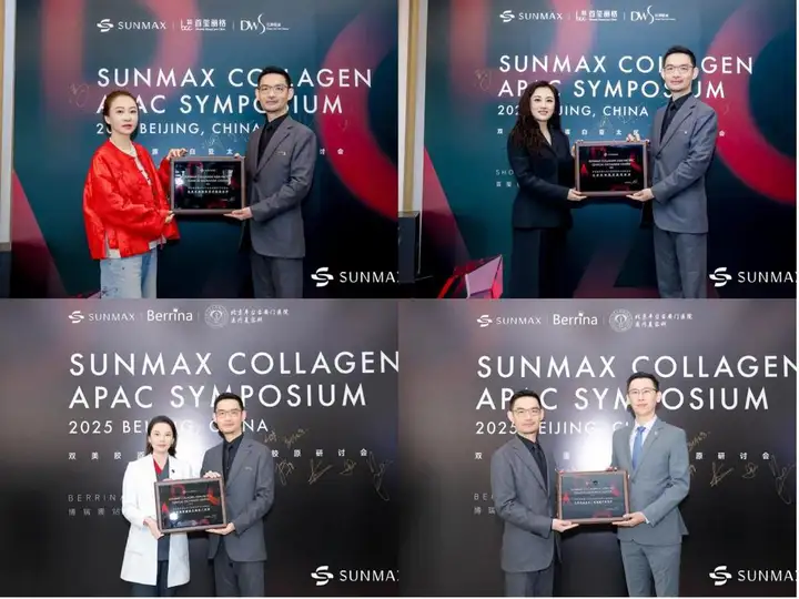 为感谢四家机构所提供的卓越临床交流平台及推动跨国技术合作方面所做出的突出贡献,双美总经理林明毅特向北京首玺丽格医疗美容诊所、北京伍珅医疗美容诊所、北京博瑞娜医疗美容门诊部、北京丰台右安门医院颁发“双美胶原蛋白亚太区临床技术交流基地”奖章 。感谢他们对于双美的支持以及对行业的贡献,也祝福他们未来能继续丰富胶原蛋白临床应用和蓬勃发展。