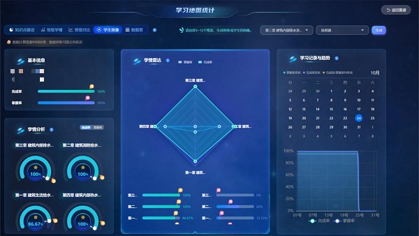在教学实践中,研究团队依托“超星学习通”等智慧平台,围绕“思政、理论、实务、研究、赛证”五个维度,重构课程资源体系。通过采集与分析学习数据,实现学生学习行为、知识掌握、能力发展的多层次诊断,从而精准推送个性化学习资源与任务。学生可以在智能系统的辅助下,自主选择学习内容与节奏,真正做到“因材施教”“因人而学”。