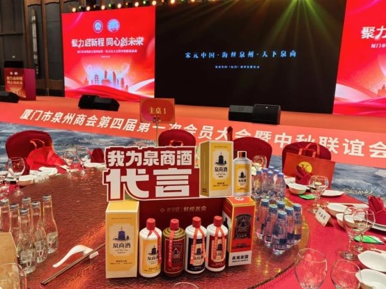 . 泉商家国酒业的泉商传奇酒作为晚宴用酒,以其独特魅力征服全场嘉宾。作为泉州城市文化酒,泉商酒拥有独一无二、不可复制的IP力量,品牌矩阵涵盖泉商一号、泉商如潮、泉商传奇、泉商喜酒、五洲泉商、泉商鹿鼎等多个系列,每一款都承载着深厚的泉州文化底蕴和泉商精神。