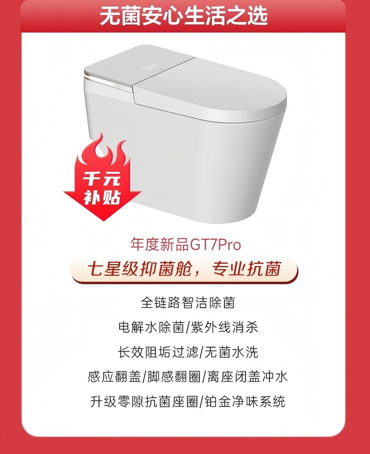 本次双十一,安华卫浴重磅推出多款集颜值与科技于一身的智能新品。搭载 “全链路智洁除菌系统” 的GT7Pro智能坐便器成为焦点,其融合了电解水除菌、紫外线消杀、长效阻垢过滤、高速烘干等尖端科技,确保每一次使用都安心无忧。同时,具备感应翻盖、脚感翻圈、离座自动冲水等便捷功能的设计,与加宽抗菌座圈、铂金净味系统相结合,为用户带来极致洁净、舒适且人性化的如厕体验。
