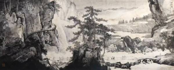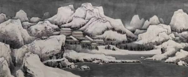 本次《时至骨自换》特展,以山水画数量最多,其中两幅2米乘5.5米、一幅1.6米乘3.2米的巨构《移居图》、《寒山金阙》和《翠峰迎辉》尤为引人注目。苏小松先生以当代绘画的视野重新精彩地观照、接续、再现了宋人山水的文脉。