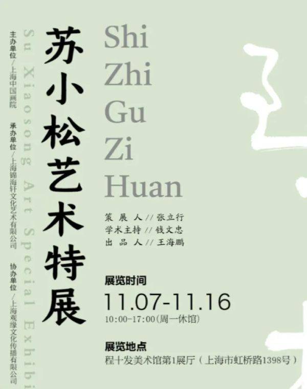由上海中国画院主办的《时至骨自换---苏小松艺术特展》将于11月7日在16日在上海程十发美术馆举行。展览呈现了著名画家苏小松近年创作的具有宋元绘画正脉气息的近百件山水、人物、花鸟作品,展现了新古典主义海派绘画在当下中国优秀传统文化大复兴语境下的独特价值。本次展览策展人为张立行,学术主持为著名学者钱文忠。