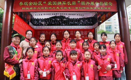 最让人震撼的是他连续十多年四处寻访,拍摄了152位抗战老兵,将这些照片布置在小区的长廊上,自费建起了爱国拥军长廊。每年迎接来自四面八方的学校、企事业单位前来参观,义务讲解。