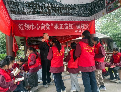 2025年11月4日上午,金坛区河头实验学校“关心下一代周报”小记者一行20多人,来到名仕家园爱国主义教育基地,采访常州好人谢才保爷爷。