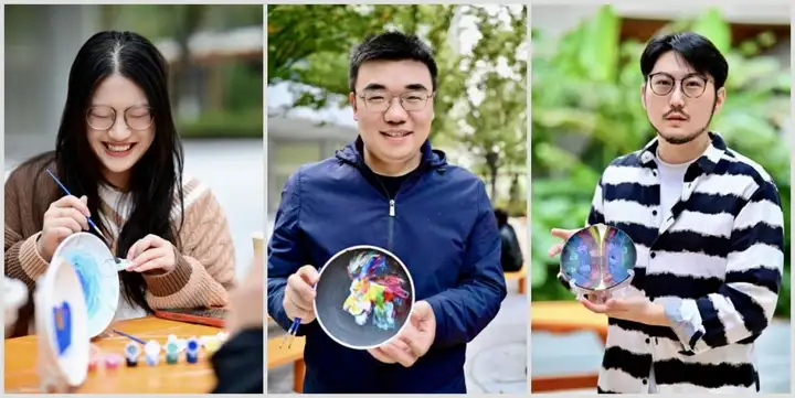 下午15:20开始,参与者在“手中之器:陶瓷艺术疗愈”环节中进行陶瓷彩绘创作。活动准备了素胚陶盘、水彩、水彩笔、水桶及置物架等材料,大家在温和的氛围中以绘画与触感重新认识材料与自我。在创作过程中,艺术家强调,艺术的疗愈力量并非源于技巧,而在于情感的自然流露与创造性表达的过程。同时,艺术家还特别提到AI技术在当代艺术中的辅助作用,并以DeepSeek等新兴人工智能工具为例,阐述艺术家如何通过AI生成图像、构思结构或进行视觉实验,从而拓宽创作的想象边界。他指出,这种“人机协作”的方式并非取代手工创作,而是让艺术家能够以更自由、更开放的方式思考形式与精神之间的关系。