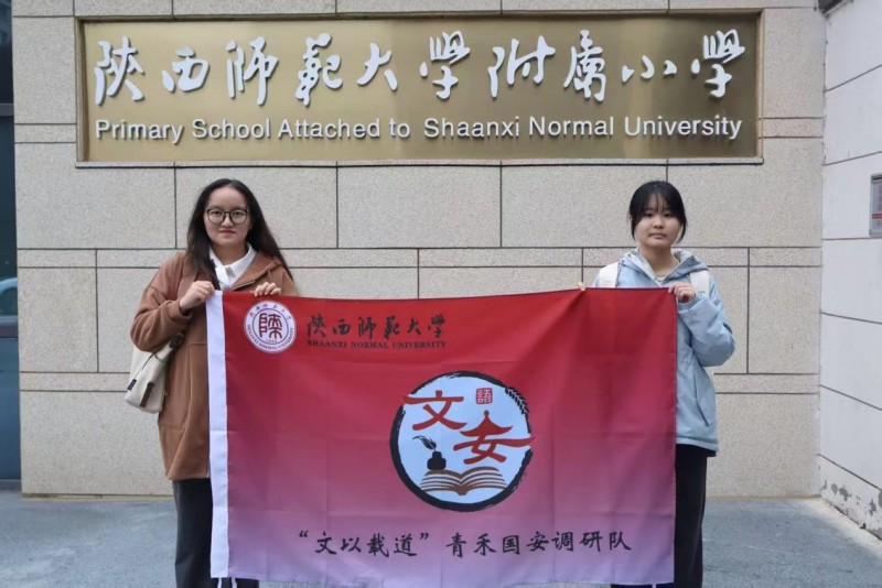 图 3 青禾国安调研队在陕西师范大学附属小学前的合照