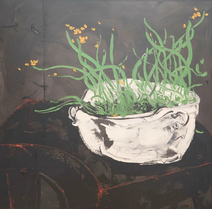 他的创作,从“山外山”的苍劲到“繁花”的绚烂,从“器系列”的朴拙到“昆虫系列”的灵动,无一不是在寻常物象中,挖掘不寻常的精神能量。其笔下的太湖石,嶙峋中见元气;其所绘的杯盏器皿,静默中载厚史;其勾勒的花草虫鱼,既是对自然生命的礼赞,亦是对东方禅意的当代诠释。