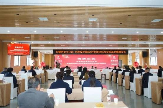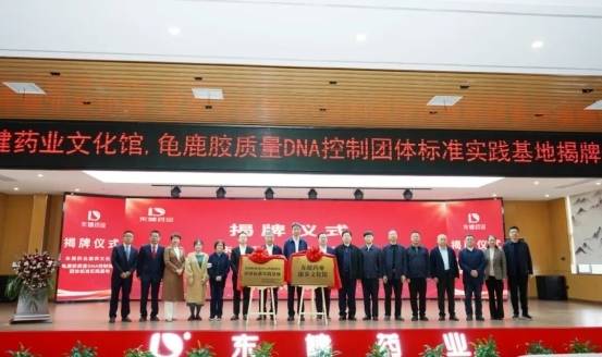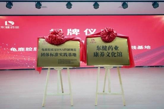 衡阳市人民政府副市长谢宏与东健药业董事长王林共同为东健药业康养文化馆揭牌;湖南省中药材产业协会秘书长扬子墨与山东省农业科学院研究员步迅共同为龟鹿胶质量DNA控制规范团体标准实践基地揭牌。两块沉甸甸的牌匾,承载着文化的厚重与科技的锋芒,正式掀开了东健药业发展的新纪元。