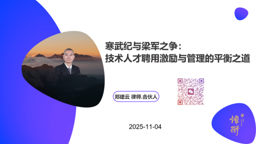 技术人才聘用与管理之间达到有效的平衡才会既有利于企业发展也有利于人才的成长,而这一目标的实现,有赖于前期人力资源管理体系的周密安排和精心设计。2025年末,前副总经理兼首席技术官梁军向雇主寒武纪公司索赔高达42.87亿元的天价股权激励,刷新了国内技术人才纠纷的索赔纪录。核心争议点为入职意向书与持股计划的法律效力优先性问题。劳动者主张,在先的入职意向书中约定的股权授予条款应当履行,而公司则坚持认为,在后签署的持股计划已经构成对原约定的变更;另一个值得关注的焦点是股权激励性质的法律认定,比如员工持股平台的出资额与股权激励兑现之间如何有效衔接等。由此可见,技术人才聘用激励与管理的平衡之道十分重要,编者特邀有着丰富公司经营管理经验的劳动人事纠纷解决专家、北京市炜衡律师事务所合伙人郑建云律师一起就这个话题进行探讨。