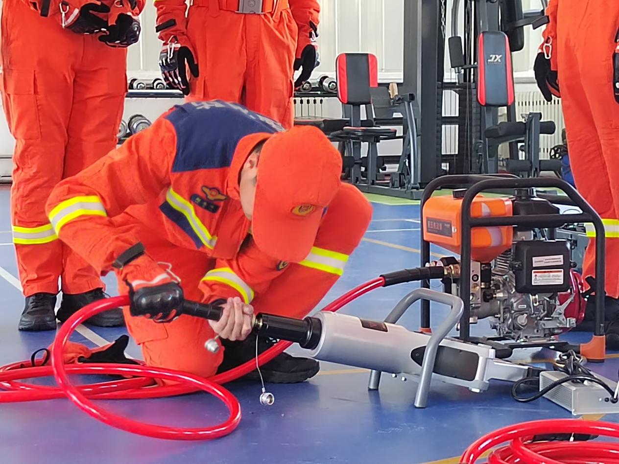 为全面提升队伍地震灾害应急救援实战能力,近日,兴安盟森林消防支队白狼中队在训练馆内组织开展地震救援装备操作学习,重点围绕电动剪切器、机动液压泵、电动液压泵、液压剪阔器、液压顶撑器等核心救援装备,开展沉浸式教学与实操训练,切实筑牢救援“硬底气”。