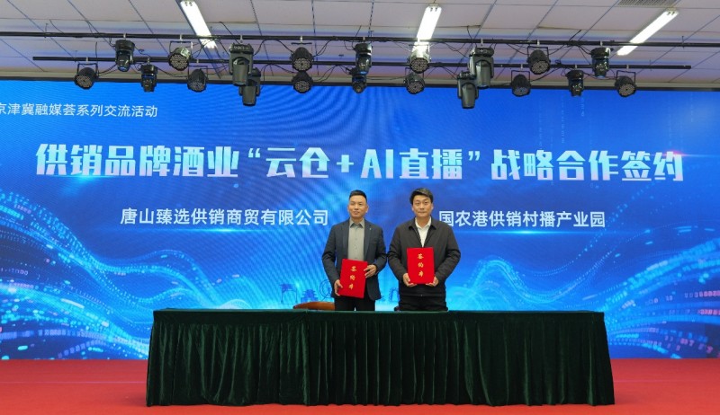 同时,来自京津冀三地的平谷区供销社、蓟州区供销社、三河市供销社、兴隆县供销社共同成立“平蓟三兴跨省市供销合作联盟”。合作联盟的成立不仅是从“地域相邻”到“合作相融”的深度跨越,更将打通三地农产品、日用品的供销链路,为京津冀直播产业提供源头好货直供、跨域物流畅通的坚实支撑,让协同发展的红利真正惠及产业链各端。唐山臻选供销商贸有限公司与国农港供销村播产业园也在现场达成战略合作协议,双方将以唐山供销品牌酒云仓为基础,结合AI直播技术,打造“仓储直达直播间、数据驱动精准营销”的酒业销售新模式,为京津冀特色产品直播带货树立“数字化+供应链”协同的新样板。
