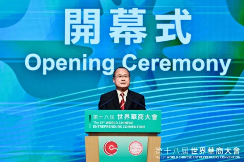 11月3日,第十八届世界华商大会在澳门开幕。中共中央政治局常委、全国政协主席王沪宁发来贺信,全国政协副主席何厚铧、咸辉,澳门特区行政长官岑浩辉,中联办主任郑新聪,国务院侨务办公室主任陈旭,中国侨联主席王灵桂,全国政协常委、港澳台侨委员会主任刘赐贵,外交部驻澳特派员刘显法,立法会主席张永春,经济财政司司长戴建业,香港中华总商会会长蔡冠深,澳门中华总商会会长崔世昌等担任主礼嘉宾。现场汇聚全球华商50多个国家及内地、澳门工商界人士共约4000人,场面盛大,气氛热烈。