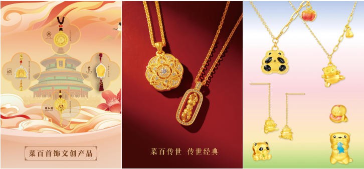 此次进博会也带来了众多蕴含中华优秀传统文化的精品。包括与天坛、北海公园、颐和园、首都博物馆等文化机构联名研发的“承祈元吉”“海誓金盟”“一生颐饰”“京城喜饰”系列,还有今年上新的与北京动物园、景山公园联名的“萌动京彩”“万春纳福”系列,每一件饰品都是对中华传统文化元素的凝练,既传递中华黄金珠宝文化的精髓,也为国际首饰艺术交流搭建了桥梁,让传统美学在国际舞台上焕发新生;子品牌“菜百传世”古法黄金再度惊艳亮相,以浑厚质感的设计,满足各年龄段消费者对复古与时尚的多元追求;贺岁重磅 “抱抱马”“小马多多”等系列也同步亮相,造型上细腻精致,饱满立体,饰以珐琅,“五马”福到,为观众送去美好祝福。