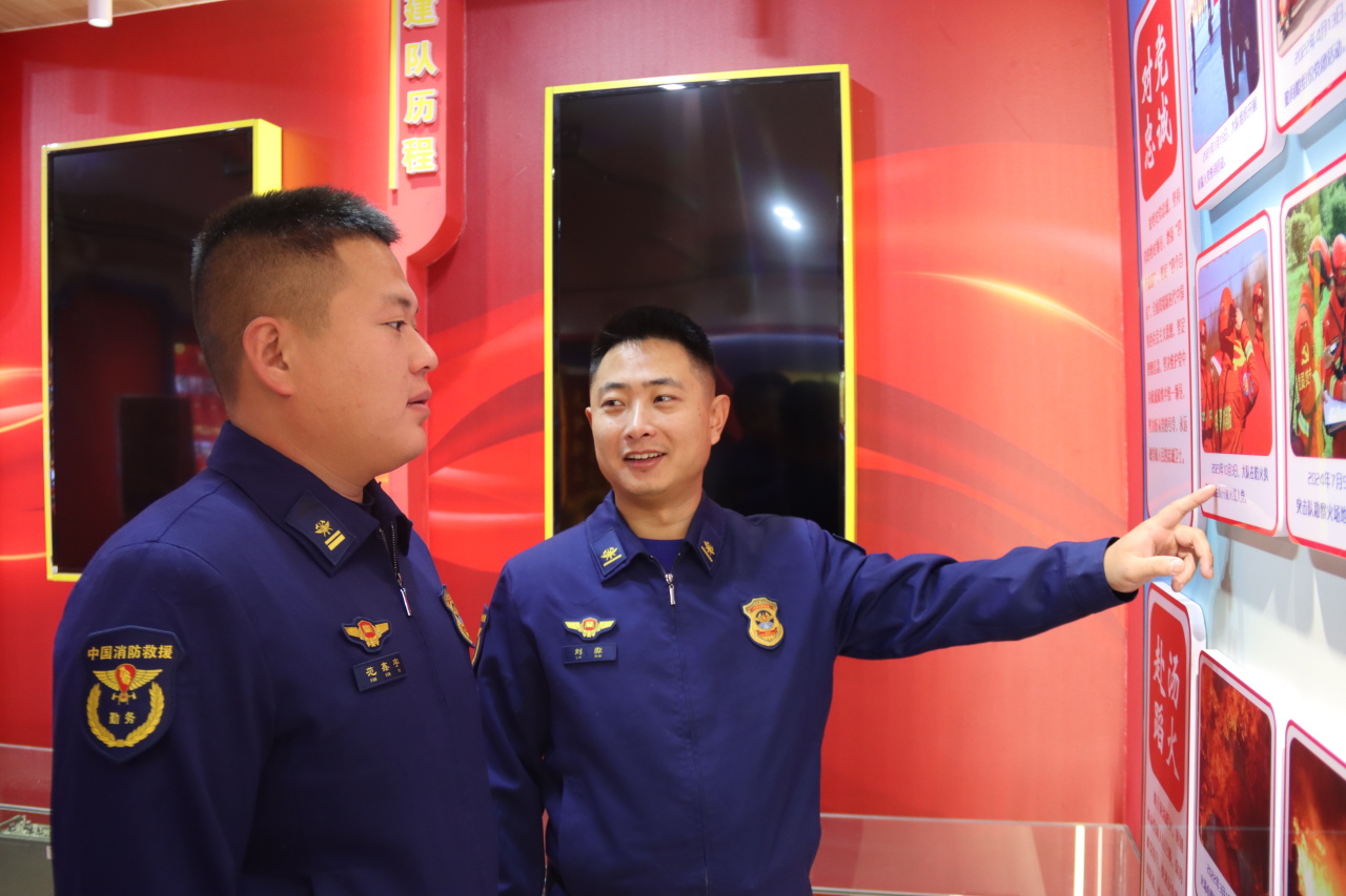 "带队伍就像种庄稼,得蹲下来看苗情。和队员沟通,千万别端着'官架子',要放下'身段'、掏出'心窝'——你把队友当兄弟,队友才会把你当亲人;你说的是'掏心话',换来的就是'真心干'。"明水中队中队长郑贺在和一名消防员谈心后深有感触地说。