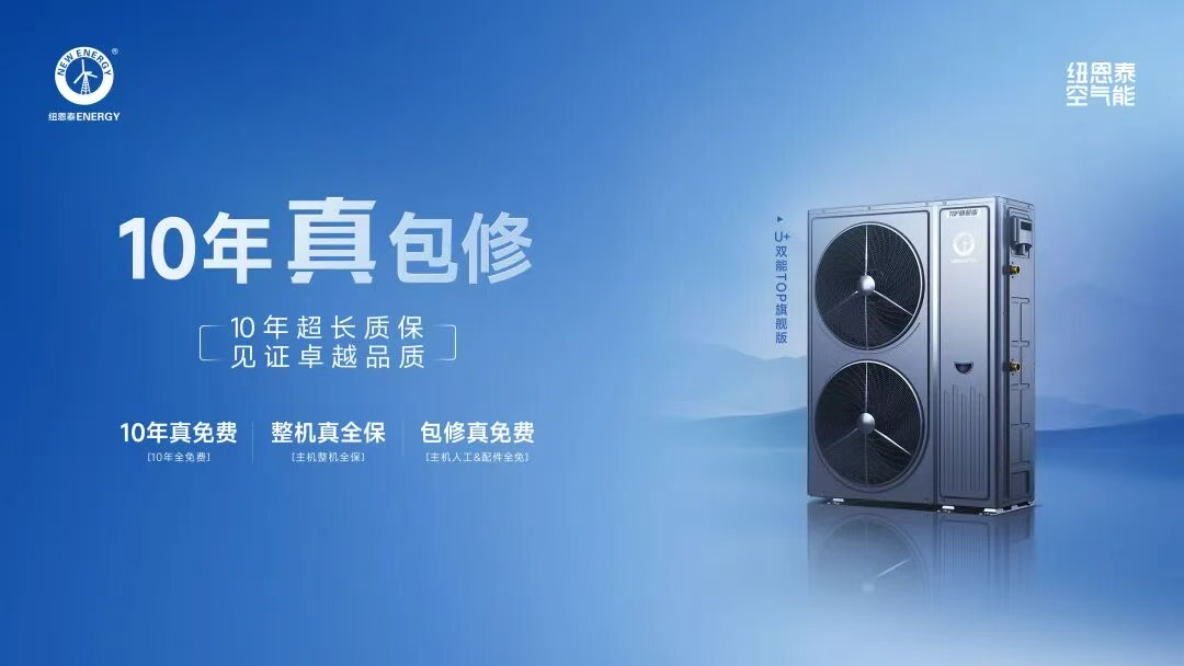 售后服务是消费者决策的关键因素。在空气能行业普遍推行6年质保的背景下,纽恩泰率先提出“10年真包修”承诺:对2025年4月购买的纽恩泰家用冷暖机实行10年质保;售后服务全程不外包,由官方团队直营;整机主机包括人工上门费用全免,真正让用户无后顾之忧。