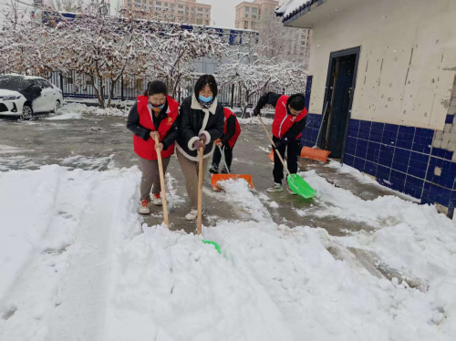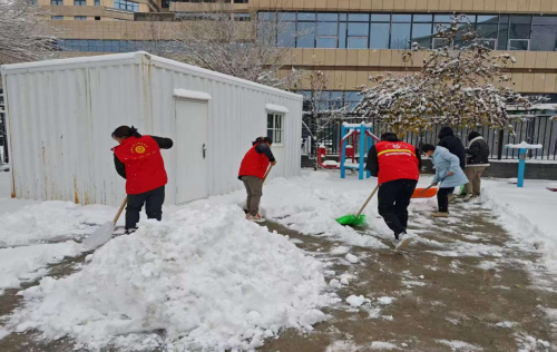 志愿者们分工清扫社区道路的积雪。即便天气寒冷,志愿者们配合默契,铲的铲,扫的.扫,忙的热火朝天。他们不怕辛苦,不怕劳累,一个个干劲十足。经过一多个小时的辛勤劳动,仓郁社区内的道路积雪都已被清扫干净,给社区居民创造一个安全畅通的出行环境。