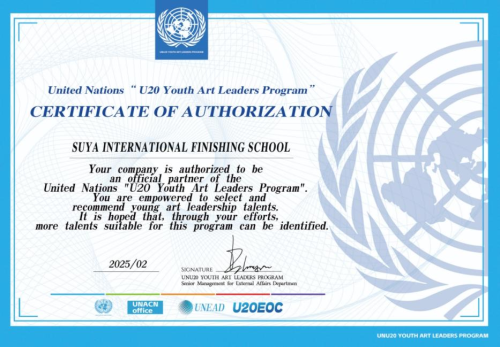 2025 年,SUYA (淑雅)国际精修学院正式成为联合国‘U20 青少年艺术领袖计划’指定推选机构。这意味着,澳大利亚及周边地区的青少年艺术人才,将可通过 SUYA 学院的专业选拔,登上联合国打造的世界级艺术交流平台,与全球精英共话艺术与成长。