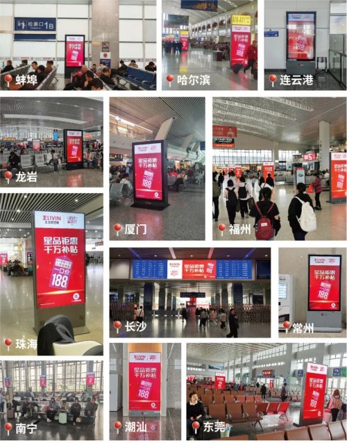 高铁站作为中国交通网络的“黄金动脉”,每日承载着数以千万计的商务、旅游、探亲客流,其汇聚的高净值人群与强消费潜力,使其成为品牌触达核心受众的绝佳战场。生活家地板巧妙地选择在重要出行节点进行集中曝光,不仅成功将“超级星品日”的品牌活动声势推向高潮,更以最为直接、高效的方式,与潜在消费者搭建起沟通的桥梁。无论是候车大厅,还是通道走廊,过往旅客都能轻松、清晰地接收到这一极具吸引力的促销信息,真正实现了品牌影响力与销售转化的高效联动。