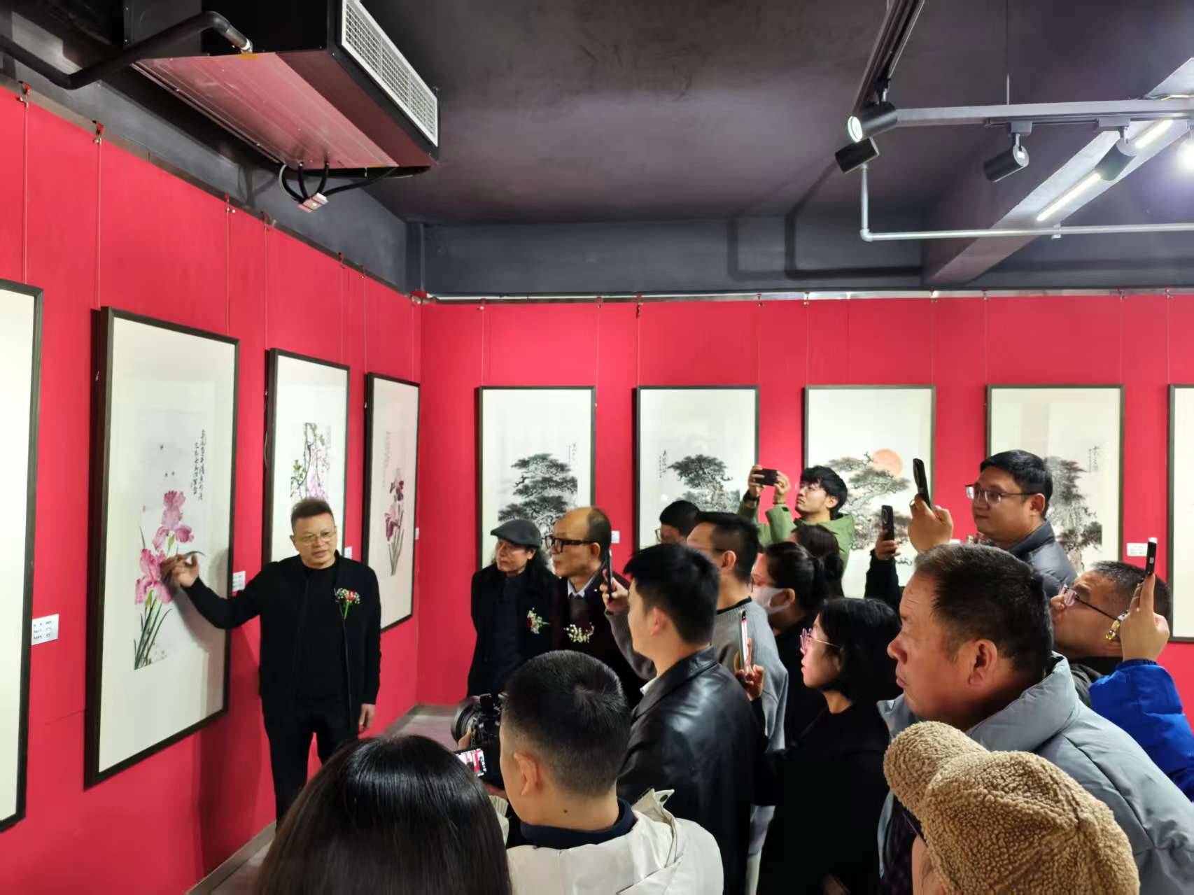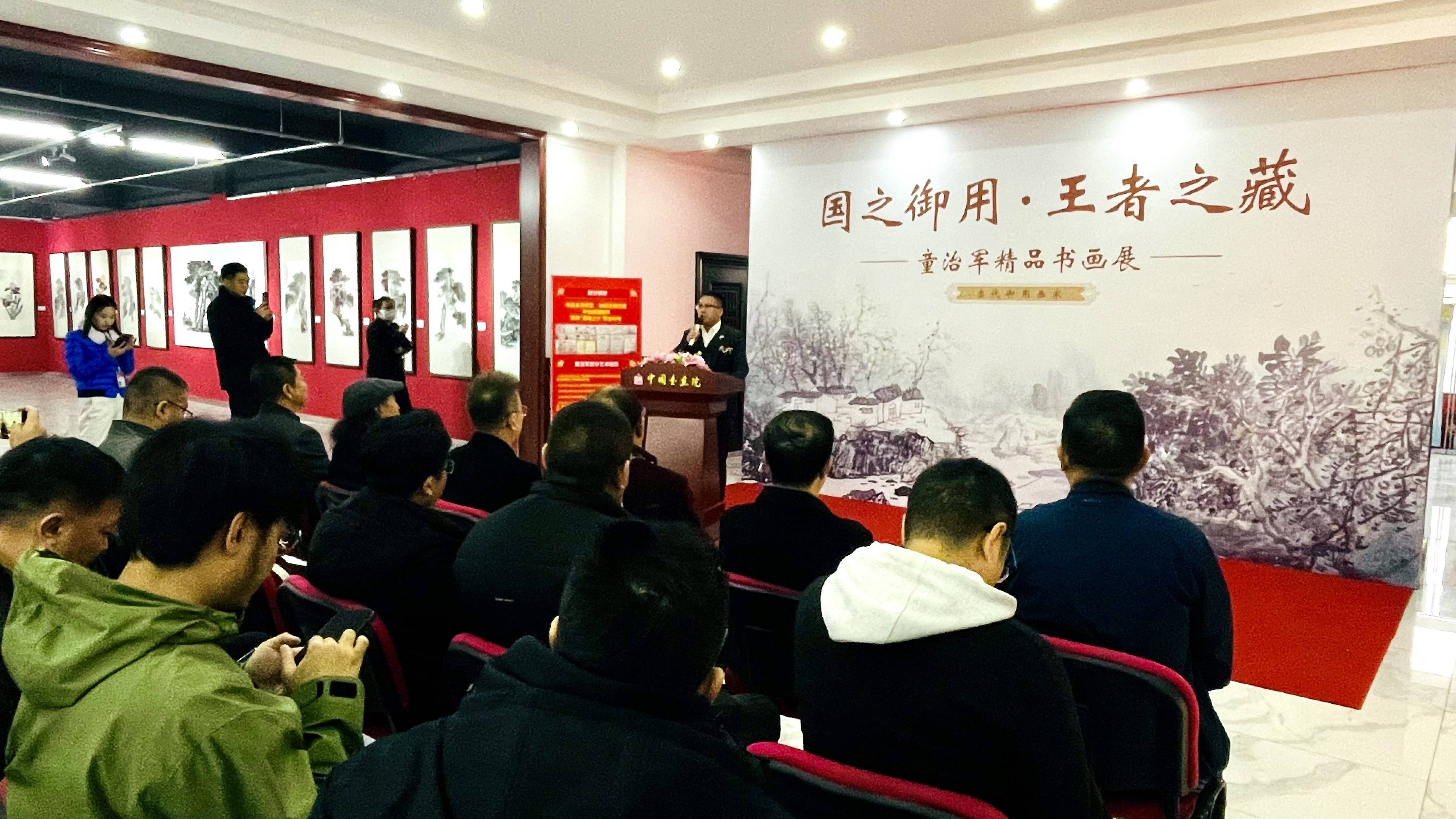 此次展出的百余幅作品,风格鲜明独特,笔触细腻而富有张力。在笔墨的趣味与写意之间,童治军巧妙地追求着独特的意境表达。无论是描绘壮丽山河的磅礴气势,还是展现花鸟画的灵动脱俗之美,他都能凭借敏锐的艺术感知力和精湛的绘画技艺,赋予每一幅作品深刻的情感内涵和思想深度。观众在欣赏这些画作时,仿佛能跨越时空的界限,与艺术家的心灵产生强烈的碰撞与共鸣。二十年,是无数个日夜的咀嚼回味,是春种秋收的辛勤劳作与丰硕收获。二十年后,童治军的作品如同金黄的麦粒,铺满了艺术的广袤田畴。在这里,我们看到的不仅仅是视觉上的震撼,更是超越感官的深刻感悟;我们听到的,是穿透时空的回响,那是艺术与灵魂的对话,是岁月与梦想的交织。出席此次展览的嘉宾有中国社会经济文化交流协会副秘书长黄秀峰、光明日报社光明实业总经理顾军、中国美术家协会会员、清华大学美术学院高研班导师、中国田园画会副主席、一级美术师颜泉,还有藏友文化、北京恒盛艺术馆代表乐春伟以及众多书画爱好者。他们共同见证了这场艺术盛宴,在童治军的作品中感受着艺术的魅力与力量。