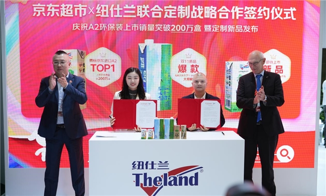 在第八届中国国际进口博览会盛大舞台上,京东超市与新西兰知名乳业纽仕兰接连举行两场战略合作签约仪式,标志着双方合作迈向全链路优化与多场景覆盖的新阶段。这两项签约既聚焦于打造“58天鲜”的极致供应链效率,又致力于推出系列化定制新品,共同满足中国消费者对进口乳品“新鲜直达、优质多样”的核心需求。