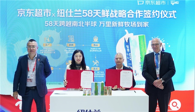 在第八届中国国际进口博览会盛大舞台上,京东超市与新西兰知名乳业纽仕兰接连举行两场战略合作签约仪式,标志着双方合作迈向全链路优化与多场景覆盖的新阶段。这两项签约既聚焦于打造“58天鲜”的极致供应链效率,又致力于推出系列化定制新品,共同满足中国消费者对进口乳品“新鲜直达、优质多样”的核心需求。