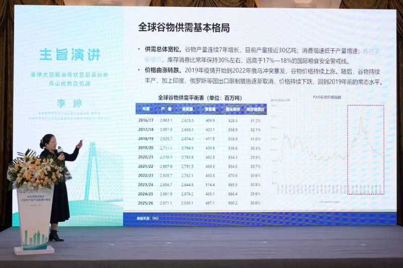 会议现场,农业农村部相关专家就全球大宗粮油现状及前景分析、肉类与水产品进出口市场分析、产业互联网平台助力大宗农产品生态构建等主题进行了主旨演讲;邀请行业内资深专家、从业者以圆桌论坛形式,围绕大宗农产品服务创新生态建设开展深入探讨;浙江舟山国际农产品贸易中心有限公司分别与平安银行上海分行、中信银行杭州分行签署“票付通”农产品产业链票据合作协议、农产品贸易结算金融产品合作协议;联合国粮农组织正式收录中国远洋渔业鱿鱼价格指数。上海海洋大学、中国水产科学研究院东海水产研究所等科研院所以及浙江粮油、光明产投等30余家企业近百位嘉宾共同参与交流活动。