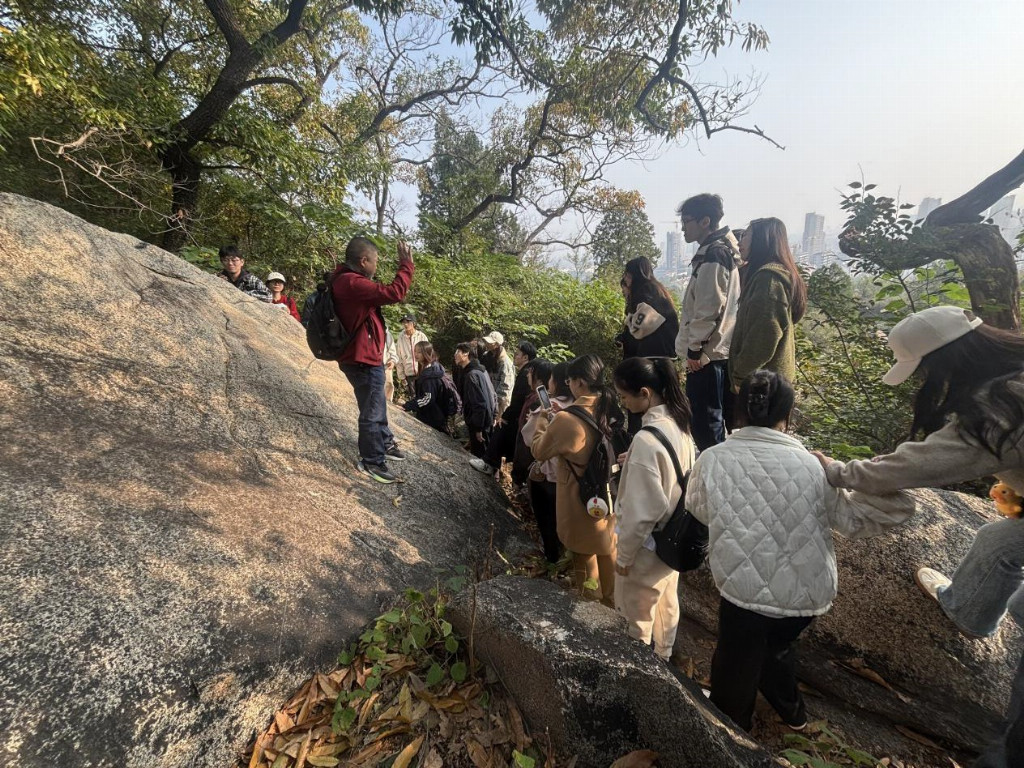 10 月 28 日,研学队伍抵达邹城。上午,师生攀登岗山与铁山,岗山的摩崖石刻散落在山谷间,不同石质与坡度造就的奇逸笔法,让“金石气”不再是书本上的概念;铁山摩崖的《大集经》以字径逾尺的磅礴气势震撼人心,隶楷相参的笔意尽显“榜书之宗”的豪迈。